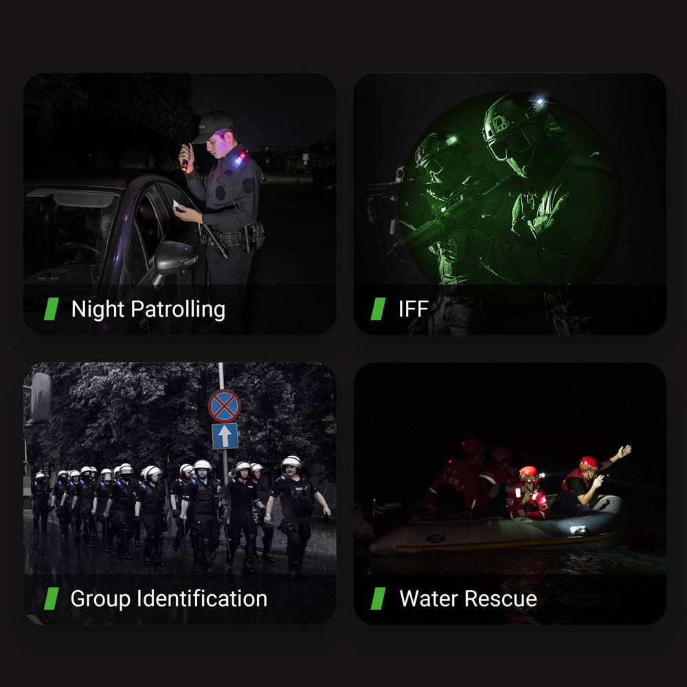 ✅ 6 color in 1 - red, blue, amber, green, white & IR;✅ Up to 13 modes (7 blinking & 6 constant modes) to suit different lighting needs;✅ Impressive long runtime of up to 113 hours on flash mode;✅ Various carry options : clipped on Molle system, webbing or shoulderstrap / mounted on ARC rails;✅ Mode memory function for quick access to last used mode;✅ Dual button design for convenient accessing to all modes;✅ Easy to read battery level indicator while charging or in use;✅ Built-in USB-C charging port for fast & convenient charging;✅ Full charge in 2 hours or less with its USB-C charging port;✅ Waterproof & shockproof. |