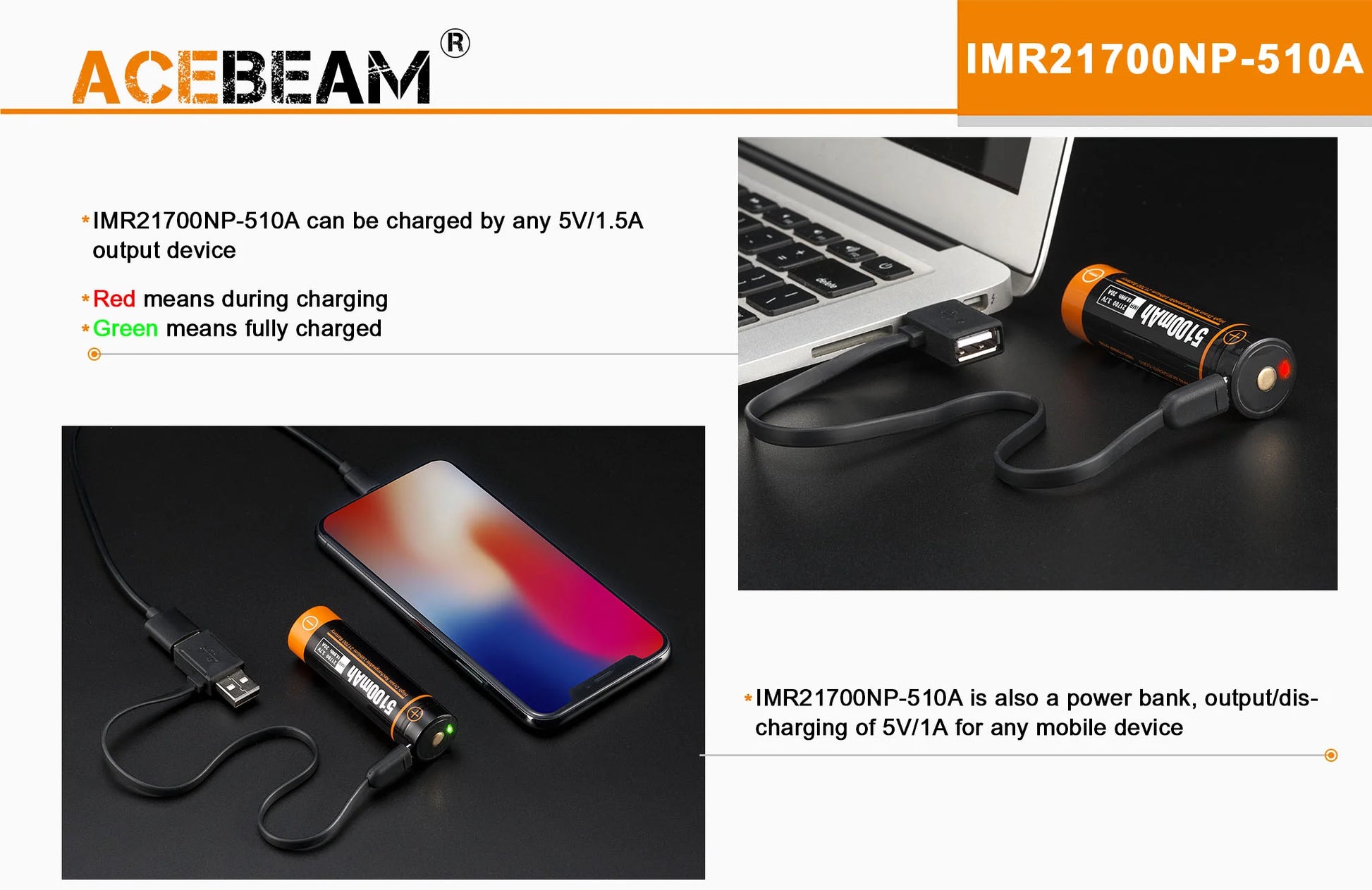 | PACKAGE INCLUDE : 1 x Acebeam D20 dive light 1 x Acebeam 21700 li-ion rechargeable battery with USB port 1 x Lanyard 1 x 18650 battery adaptor 1 x USB charging cable 2 x Spare O-ring 1 x User manual 1 x Warranty card |