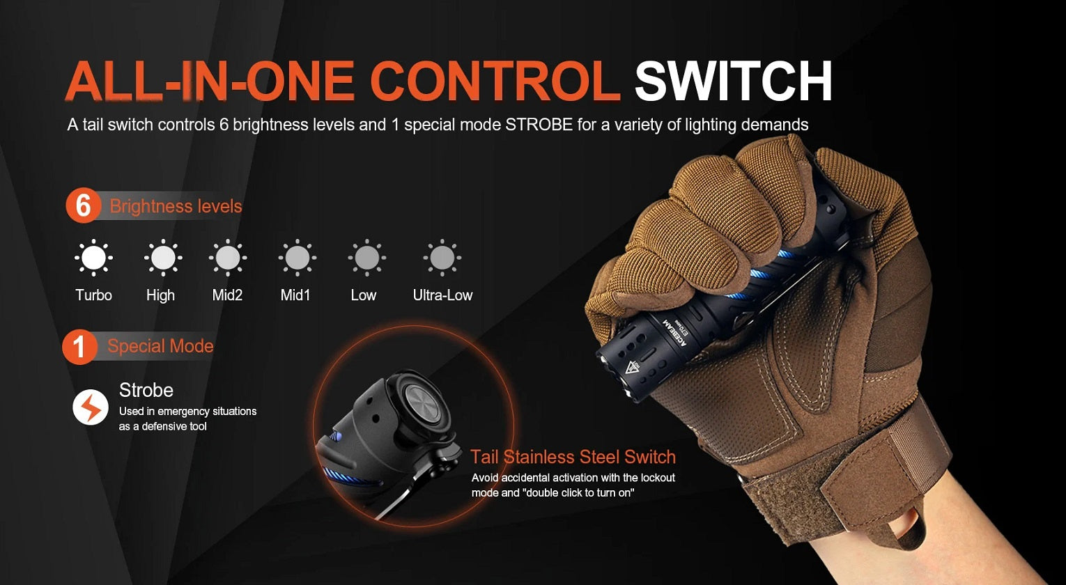 | KEY FEATURES : ✅ 2,000 lumens max output illuminate up to 153 meters; ✅ Stylish & unique double inner barrel hollow design helps to improve heat dissipation & better grip; ✅ 6 brightness levels & strobe mode for different lighting needs; ✅ Streamlined, compact & lightweight ➤ could be easily keep in pocket, pouch & backpack; ✅ Stylish & durable stainless steel tail switch, strike bezel & pocket clip; ✅ Powered by popular 18650 li-ion battery (button top / protected button top); ✅ Lock-out function & double click to turn on design to prevent accidental activation; ✅ Multiple safety protections ➤ thermal regulation, battery reverse polarity, and battery over-discharge; ✅ Sturdy aerospace-grade aluminum body with military grade type III hard-anodized finish; ✅ IP68 waterproof standard and submersible up to 2 meters. |