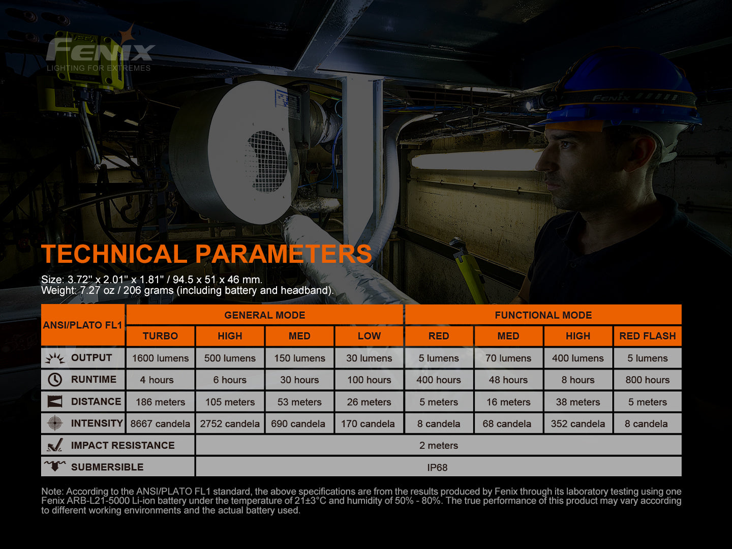 - 1,600 lumens max output shine up to 185 meters;
