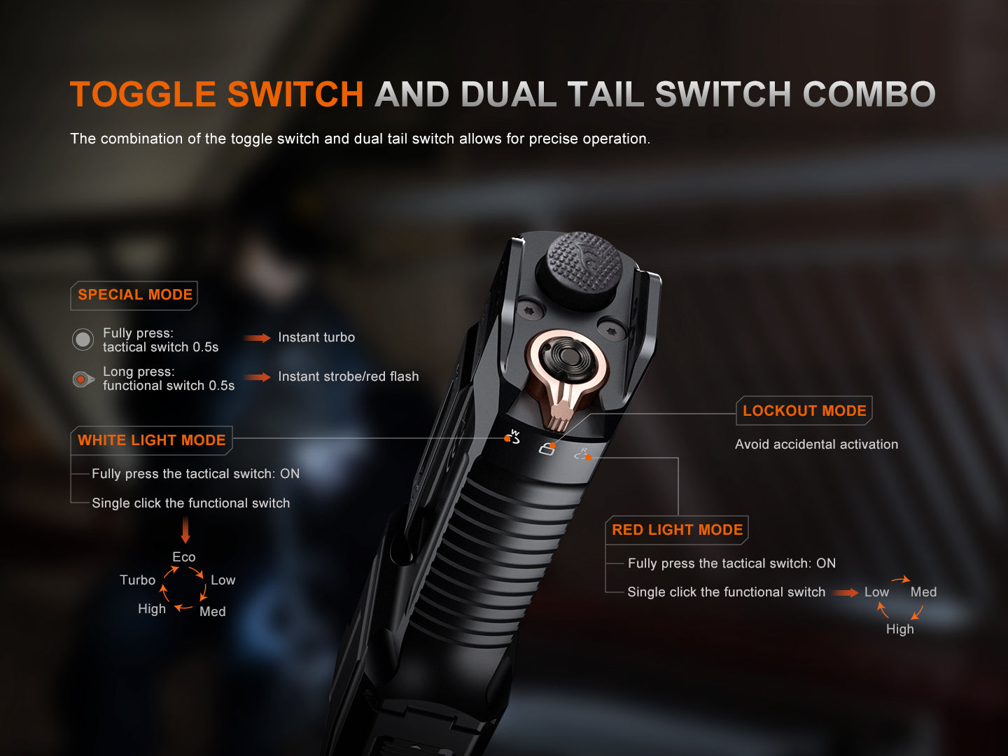 << KEY FEATURES >> ✅ 6,500 lumens max output illuminate up to 400 meters; ✅ Secondary red light for preserving night vision; ✅ Silent dual button tail switch for instant access to turbo or strobe; ✅ Easy to use toggle switch for accessing white light, red light & lock-out modes; ✅ Break-action mechanism allows for fast battery replacement; ✅ 8,000 mAh high capacity from the 2 included 18650 batteries; ✅ USB-C charging port with a full metal cover; ✅ Memory feature for quick access to last use mode; ✅ Made of durable aerospace aluminum with premium anodization that endure impact; ✅ Removeable high strength stainless steel pocket clip; ✅ Multiple protections : thermal regulation, battery over-discharge & battery reverse polarity protections; ✅ Waterproof & shockproof. |