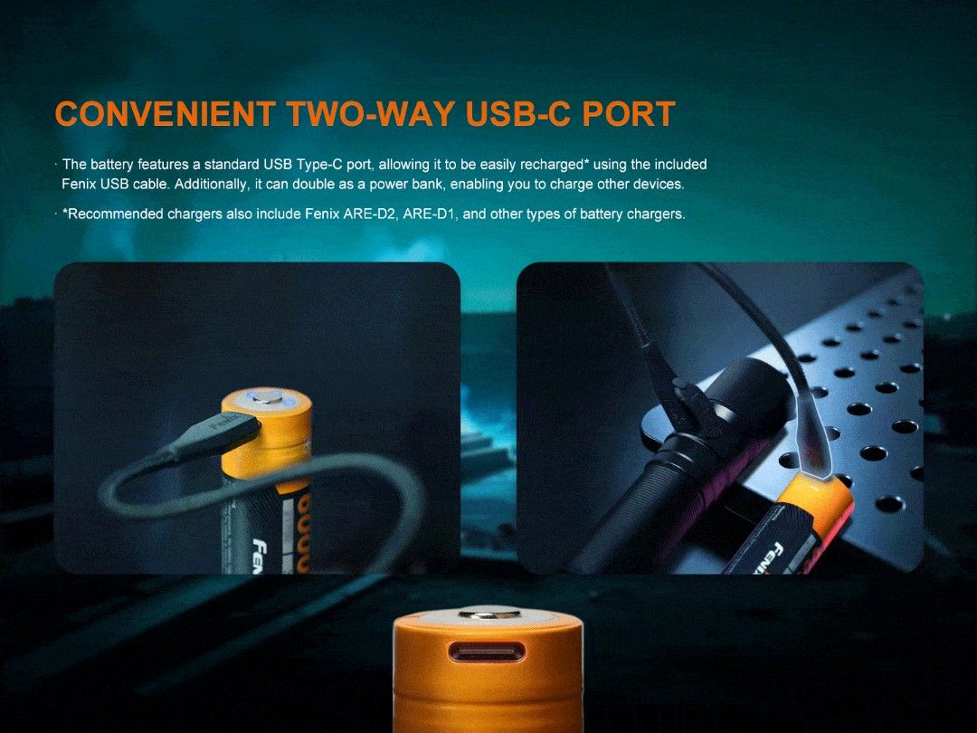 Fenix USB-C Bidirectional 21700 Rechargeable Battery