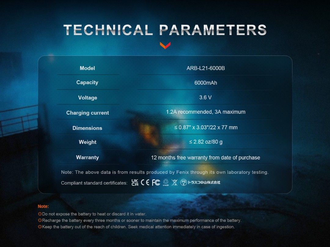 PACKAGE INCLUDE:1 x Fenix ARB-L21-6000B 21700 rechargeable battery |