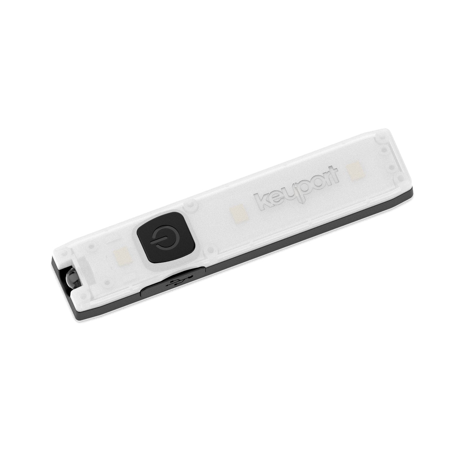SPECIFICATIONS : ✔ No. of mode, brightness & runtime : I. High : 33 lumens I 2 hrs II. Low : 4 lumens I 15 hrs III. Lamp mode : 90 lumens I 1 hr ✔ Weight : 17.2 grams ✔ Measurement : 72.8 x 15.2 x 8.4 mm ✔ Waterproof rating : IPX4 ✔ Material : PC, TPU, & Stainless Steel ✔ Compatible Keyport key organizer : Keyport Pivot 1.0, Pivot 2.0, Slide 3.0, or Slide 4.0 |