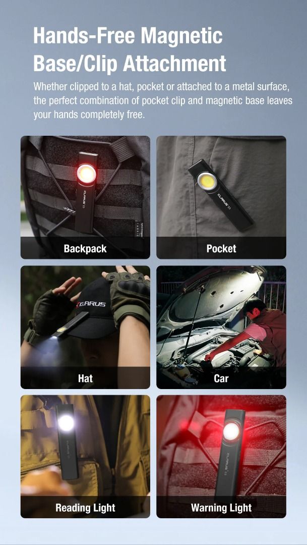 ✅ Versatile COB front (600 lumens) & side (100 lumens) lights for everyday duty needs; ✅ 8 mm ultra slim rectangular body perfect for carrying in pocket, pouch & etc; ✅ Red & blue flash mode for duty or emergency purpose; ✅ Magnetic base & sturdy pocket clip for hands-free operation; ✅ Mode memory feature for instant access to last used mode; ✅ USB-C charging port for convenient & fast charging; ✅ Made of lightweight, durable & high scratch resistant aluminum alloy; ✅ Waterproof & shockproof. |