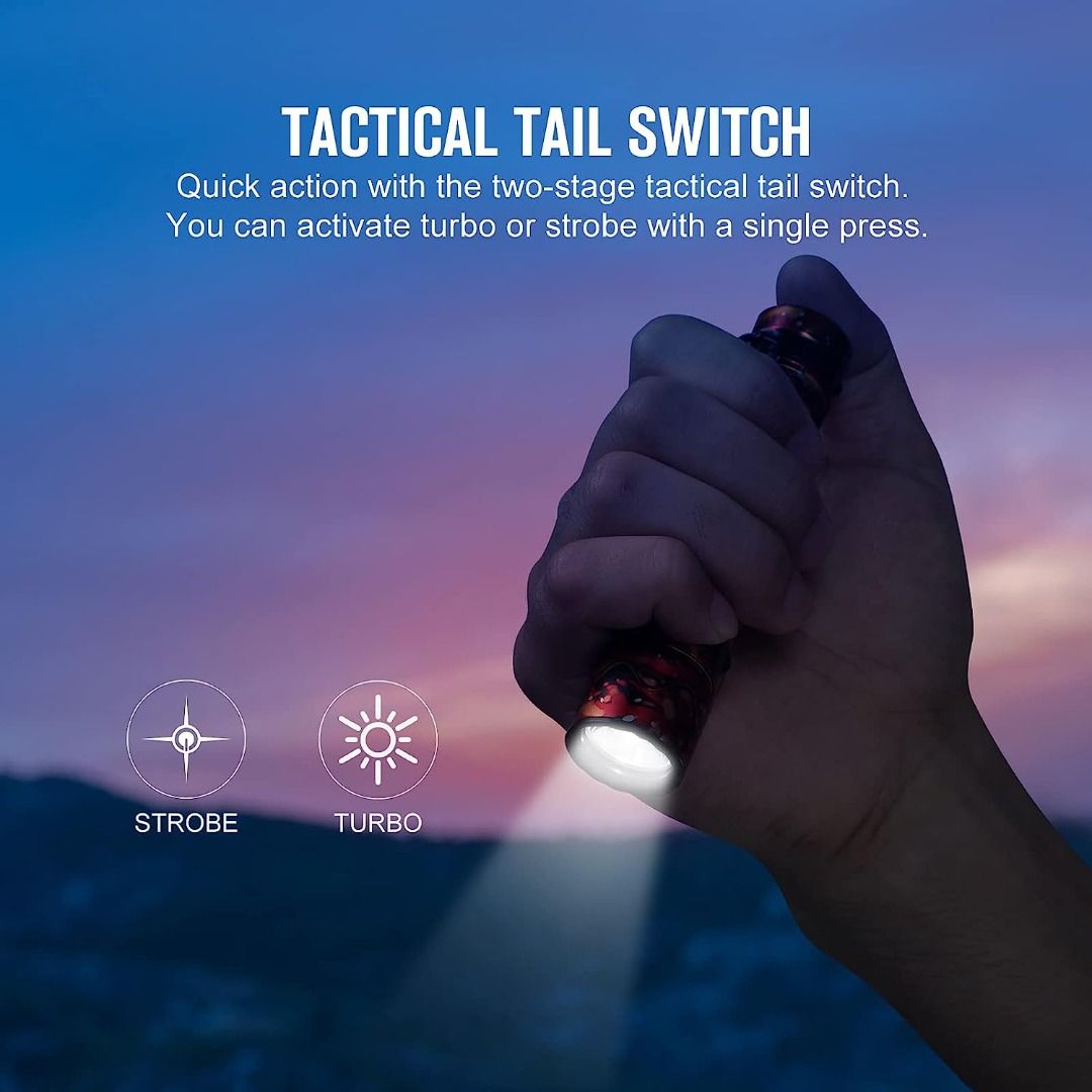 KEY FEATURES : ✅ Impressive 1,750 lumens max output illuminate up to 220 meters despite its compact size; ✅ Built-in proximity sensor that drops brightness automatically to prevent burning nearby objects while turned on higher modes; ✅ Dual switch design (tail & side) for quick access to preferred mode; ✅ Two user setting to fit your daily lighting needs - tactical & duty setting; ✅ Support hands-free operation with its magnetic tail & pocket clip; ✅ Easy to read tri-color LED indicator to keep user inform of battery status; ✅ Included removable tactical ring for quick draw; ✅ Convenient & fast recharging with Olight's signature USB magnetic charging system; ✅ Long runtime with the included 3500 mAh 18650 li-ion battery; ✅ Capable to act as lantern with its tail stand capability; ✅ Dual directional pocket clip for more carrying option; ✅ Waterproof & shockproof. |