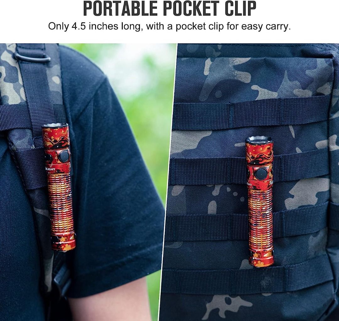 PACKAGE INCLUDE : 1 x Olight Warrior Mini 2 Lava Camouflage flashlight 1 x Olight 18650 li-ion rechargeable battery_3500 mAh 1 x Pocket clip 1 x Tactical ring 1 x Olight USB magnetic charging cable 1 x Olight lanyard 1 x User manual |