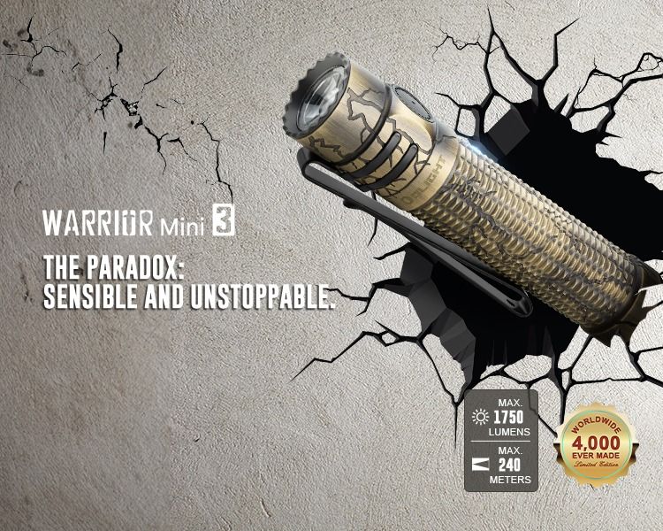 (Limited Edition) Olight Warrior Mini 3 Cracked Brass Compact LED Flashlight