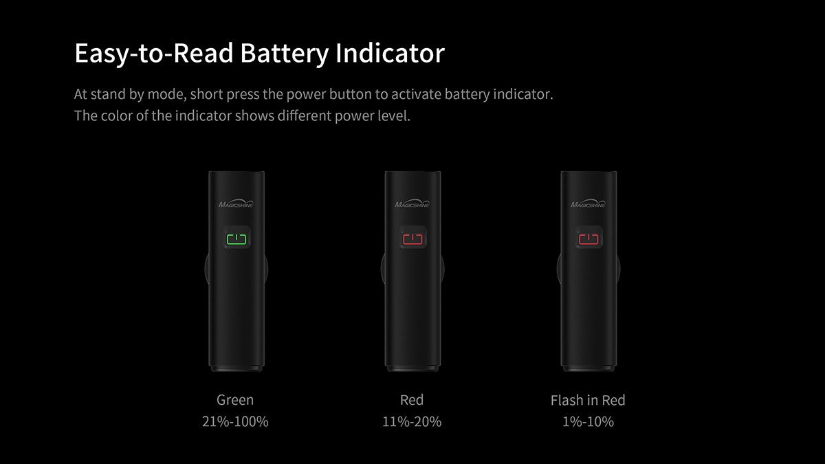 ✅ 800 lumens output that light up to 141 meters; ✅ Anti-glare lens to prevent the light from blinding oncoming traffic; ✅ Fast and convenient recharge the battery through USB-C charging port; ✅ Discharge function allow the light to be used as powerbank; ✅ Built-in 4,000 mAh 21700 li-ion battery for better runtime; ✅ Up to 3 brightness levels & 2 blinking modes; ✅ Easy to read battery level indicator on switch; ✅ Compatible with "Garmin mount" for 1 second quick attach & detach from handle bar; ✅ IPX7 waterproof standard; ✅ Memory function that memorize last used mode; ✅ Tough metal case to ensure better durability. |