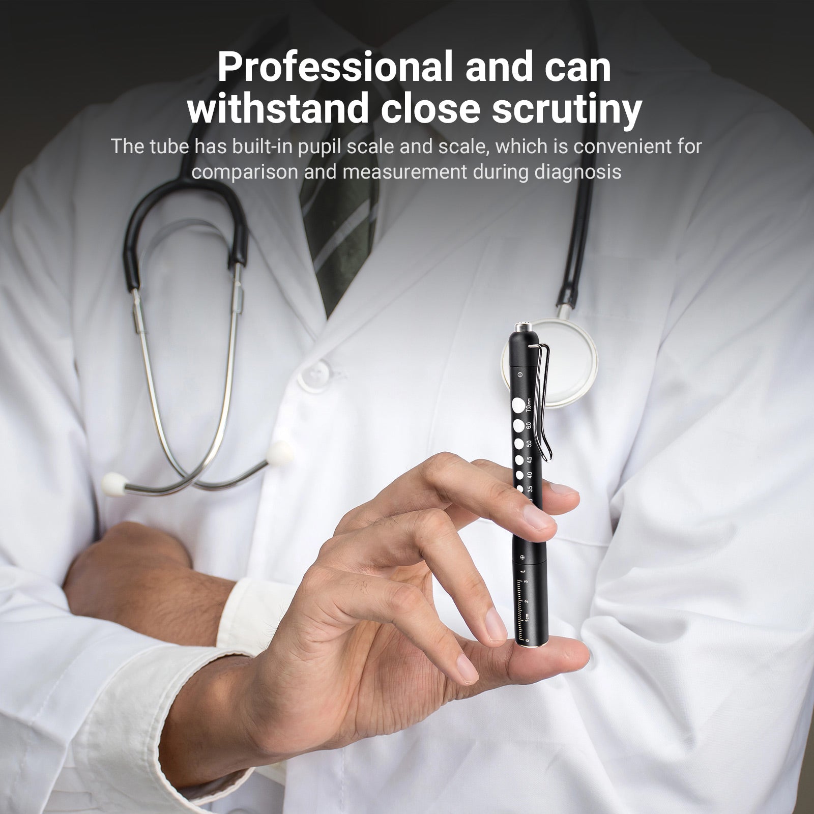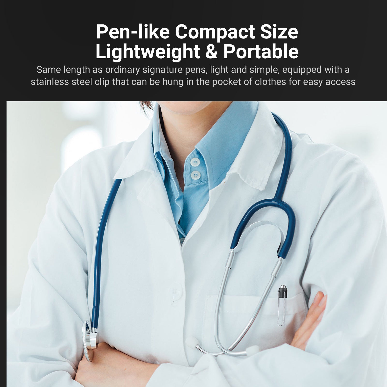 ✅ 2 specialized light sources : 3000K yellow light & 5700K white light;✅ The 3000K yellow light is certified at Blue Hazard Class RGO for providing safe & non-dazzling illumination during eyes examination;✅ 5700K white light provides perfect spectrum for ENT examinations;✅ IPX7-rated construction allows complete immersion in alcohol solutions for compliance with clinical hygiene protocols;✅ Textured tail switch is operable with medical gloves;✅ Primary li-ion battery delivers consistent performance while the backup AAA ensures the penlight is always ready;✅ 3 light modes for various medical diagnostic needs;✅ At just 39 grams, it won't weigh you down during long rounds. |