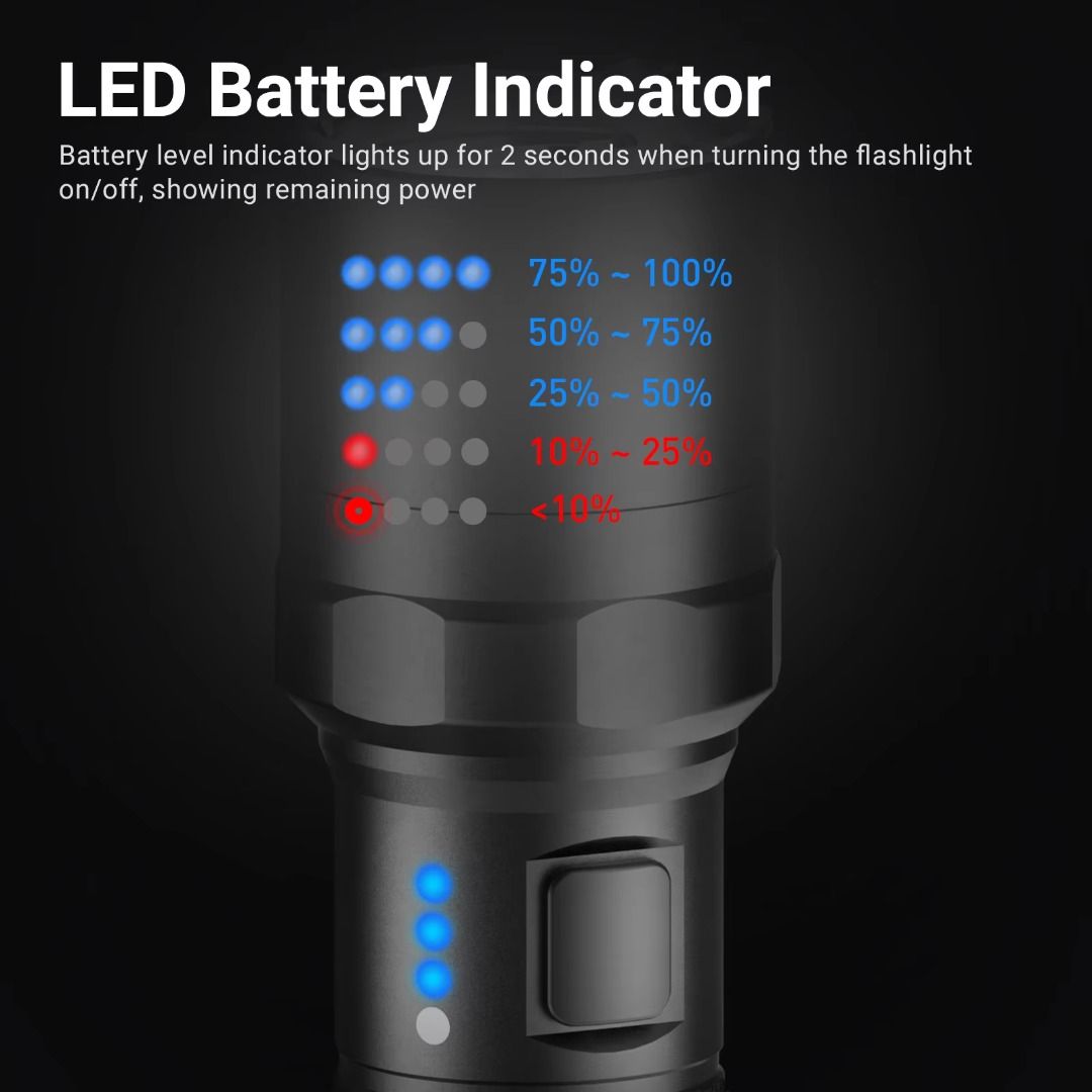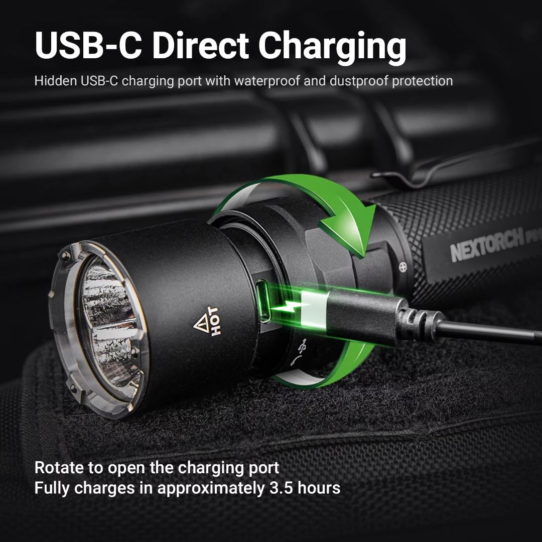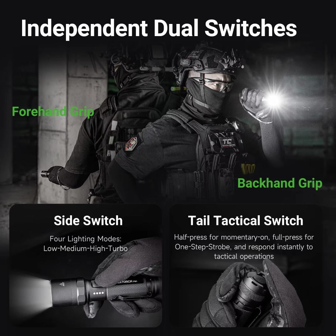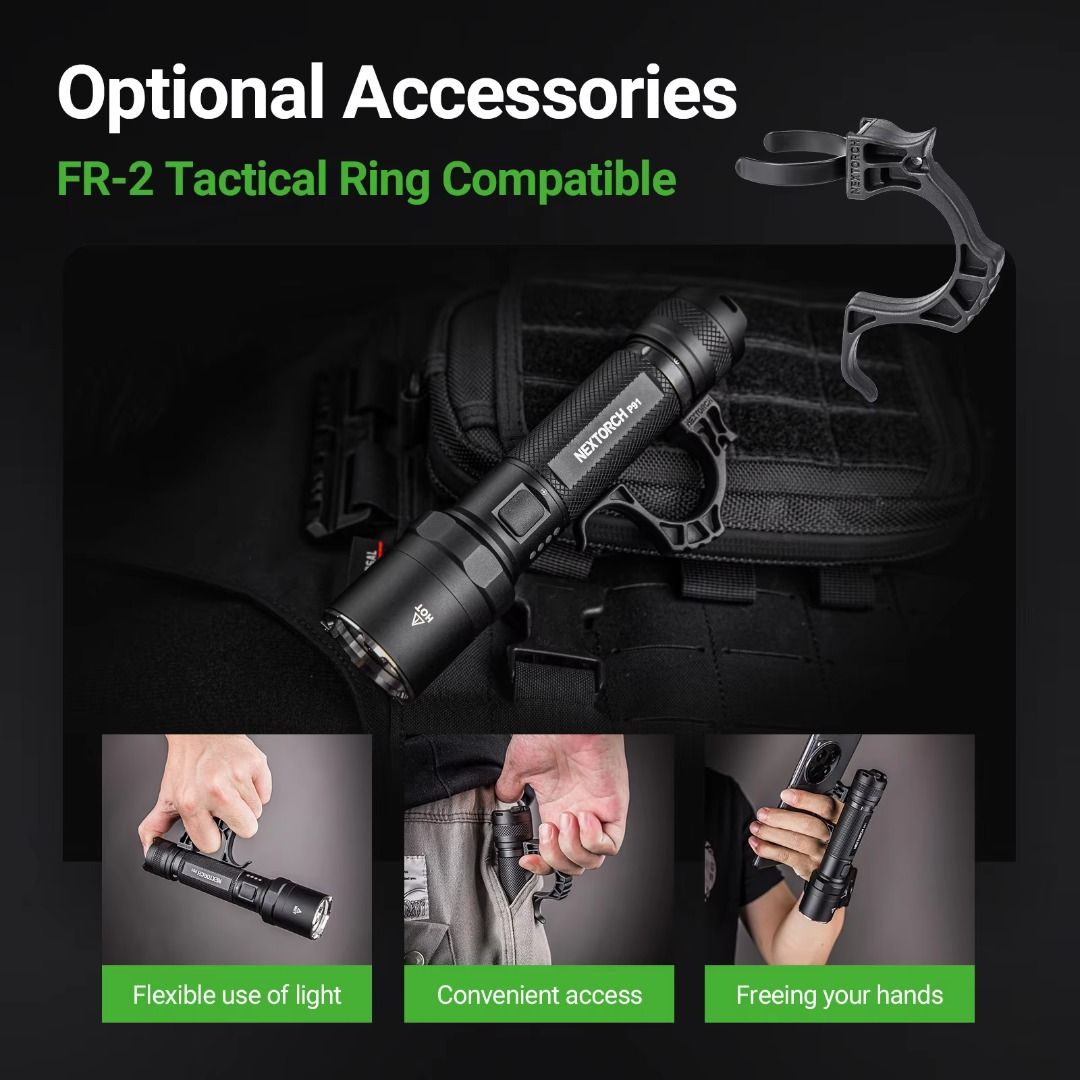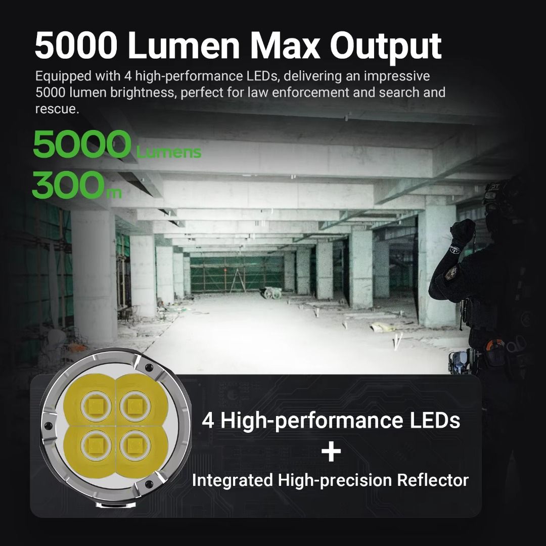 ✅ 5,000 lumens max output illuminate up to 300 meters;✅ Dual switch design (tail & side) for quick access to preferred mode;✅ Instant access to turbo & strobe modes;✅ Easy to read LED battery level indicator to keep user inform of battery status;✅ Hidden USB-C charging port on body for fast & convenient charging;✅ Nano-ceramic bead on bezel for emergency use;✅ Long runtime with the included 21700 li-ion battery;✅ Capable to act as lantern with its tail stand capability;✅ Optional tactical ring (FR-2) & quick release holster (V55L) available for selling separately;✅ Multiple protections - overheat, short-circuit, battery overcharge, & battery over-discharge protections;✅ Waterproof & shockproof. |