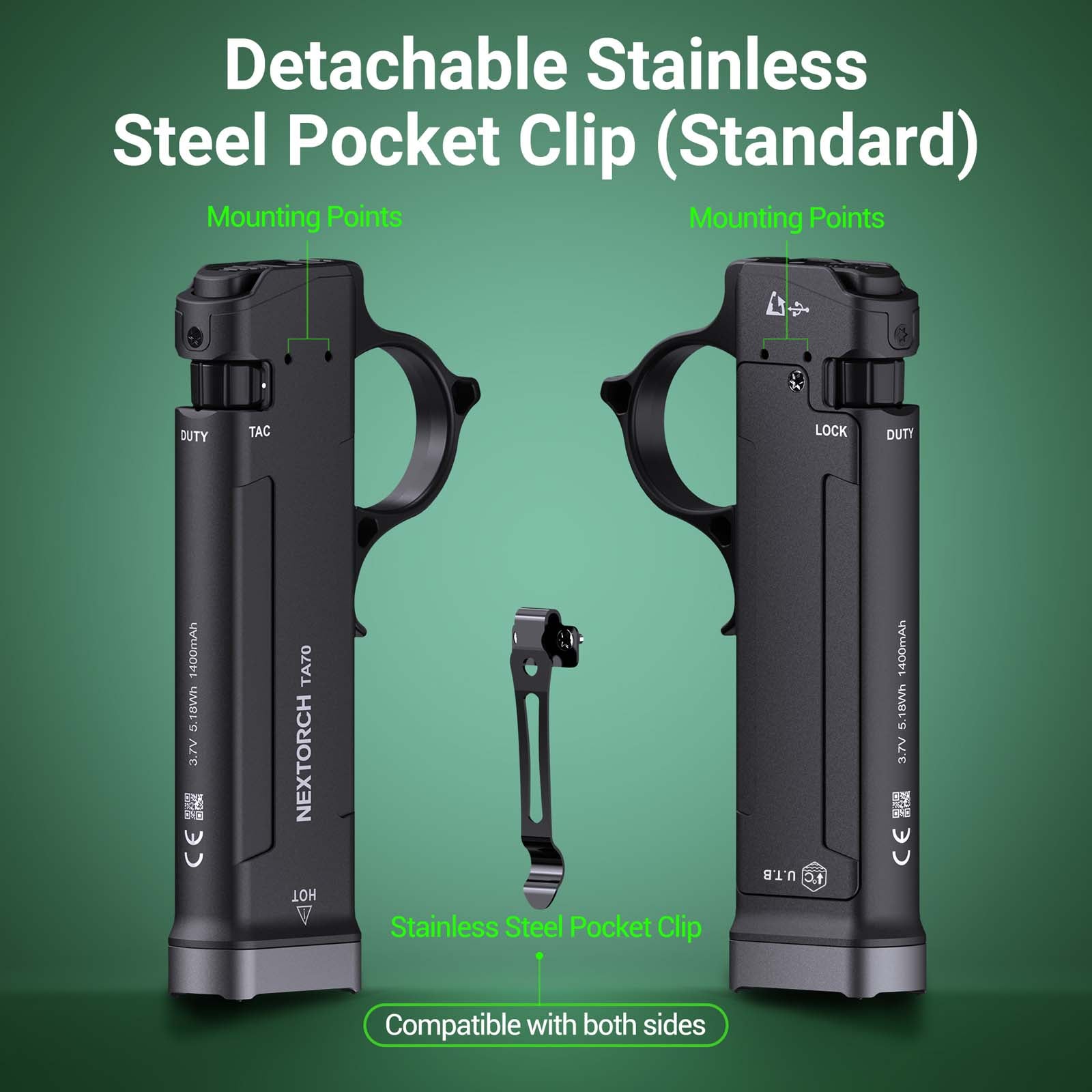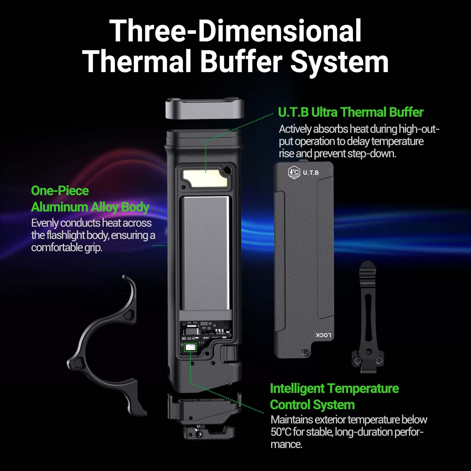 ✅ All-new Nextorch's Ultra Thermal Buffer System ("UTB") that allow TA70 stay longer in max output;✅ 3,500 lumens max output shine up to 220 meters;✅ Toggle switch for quick access to tactical, duty & lock-out modes;✅ Instant activation of turbo, strobe & low modes;✅ Tactical ring (removeable) for steady grip;✅ Ceramic beads on light head for glass breading during emergency;✅ Hidden & inner-waterproof USB-C charging port for convenient charging;✅ Multiple protection systems : battery overcharge, battery over-discharge, & overheat protections;✅ Made from lightweight & durable aluminum alloy;✅ Waterproof & shockproof. |