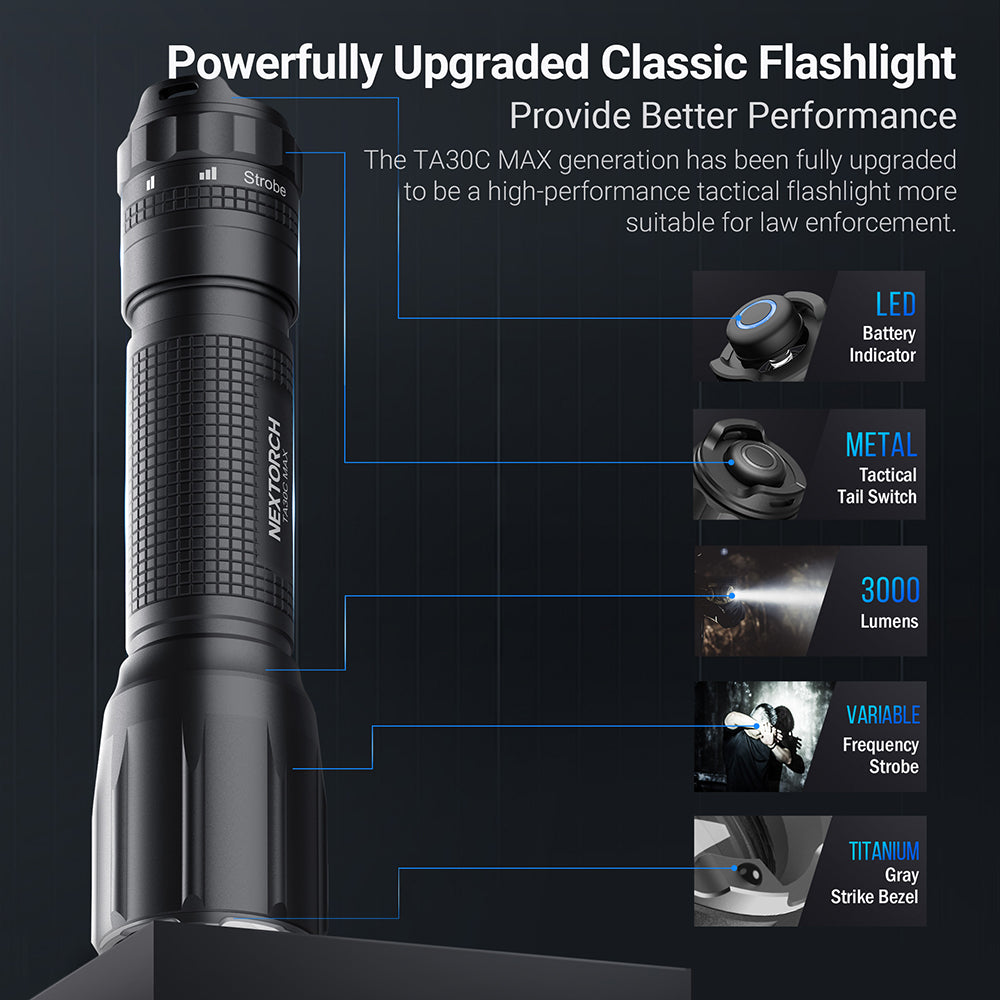 Nextorch TA30C Max Tactical Flashlight_3000 Lumens & 390 Meters