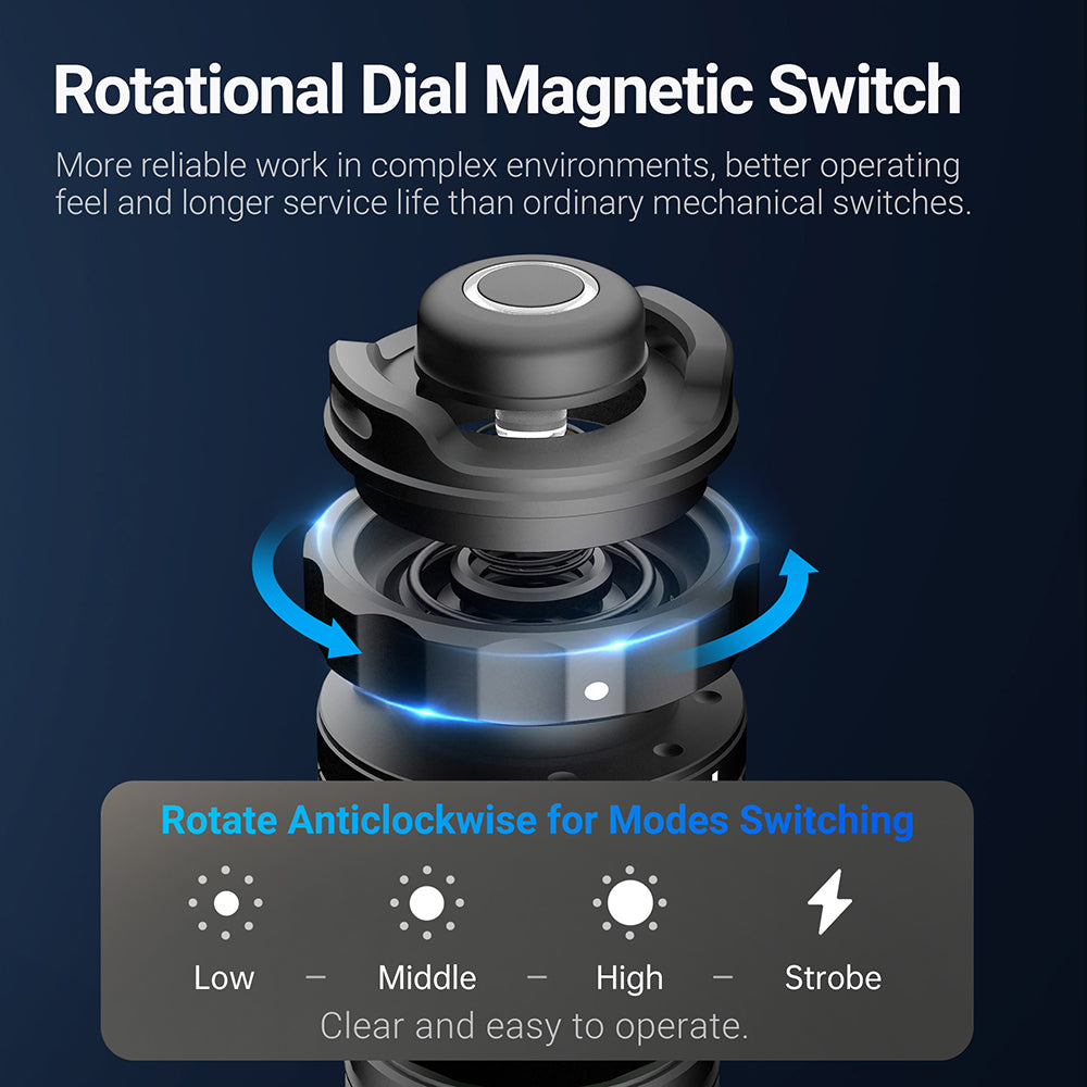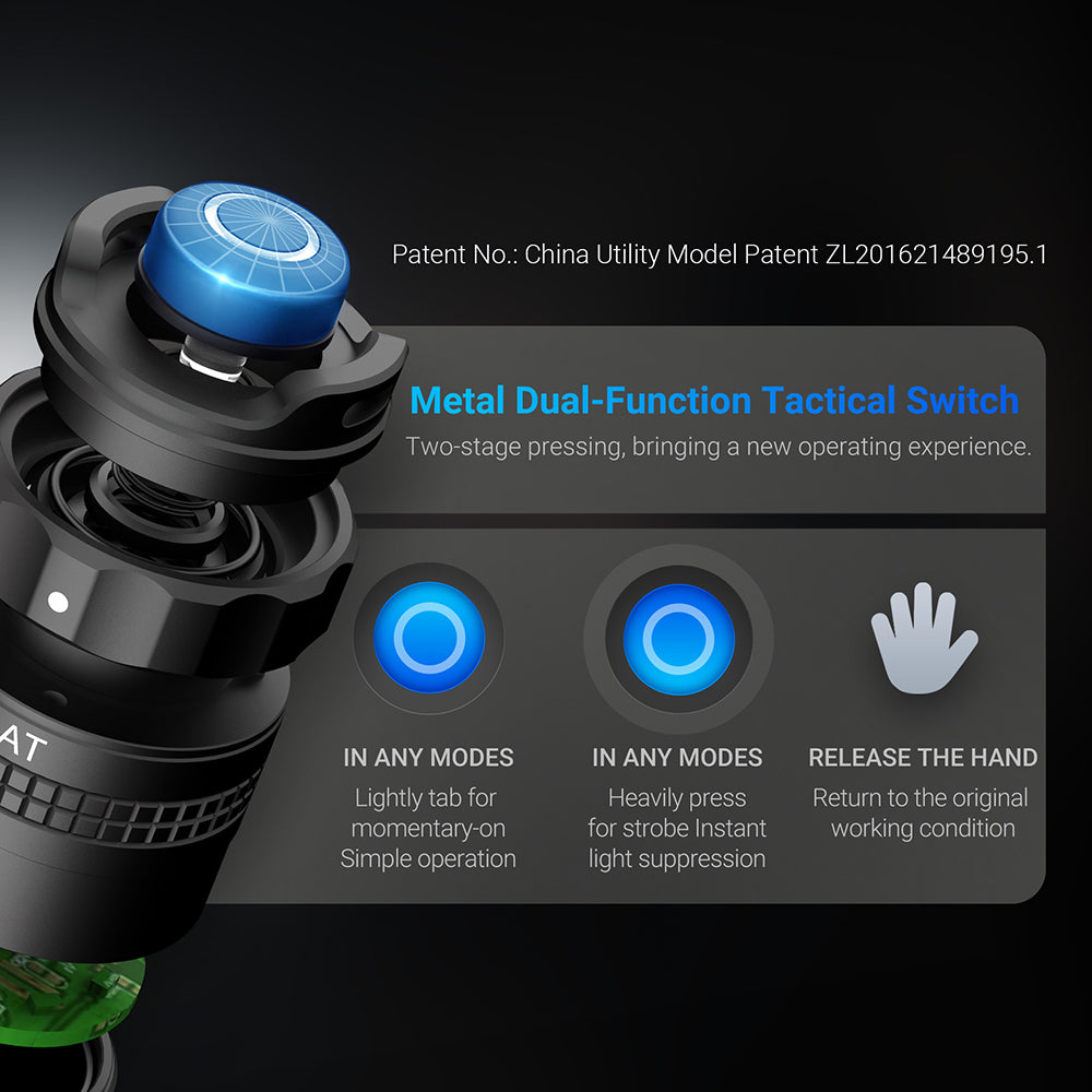 KEY FEATURES: ✅ 3,000 lumens max output illuminate up to 390 meters;✅ Unique rotational magnetic switch around the tail cap for easy access to modes;✅ Quick access to momentary turbo or strobe through its patented dual-function tactical tail switch;✅ Included 21700 li-ion battery with built-in USB-C port for fast & convenient charging;✅ Strike bezel embedded with nano-ceramic beads to efficiently break car windows;✅ Multiple protections : battery reverse polarity, thermal regulation & battery over-discharge protection;✅ Made of durable & lightweight aerospace aluminum;✅ Waterproof & shockproof. |