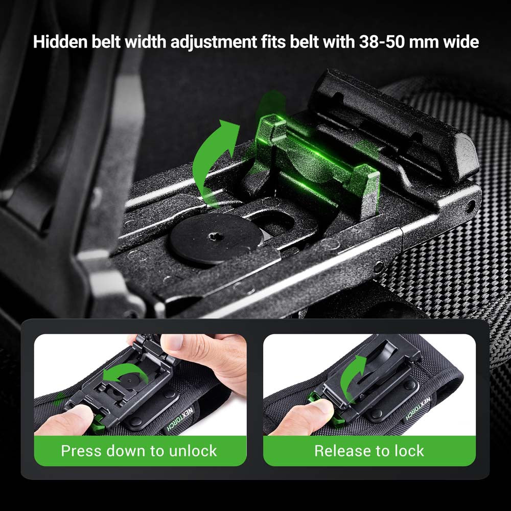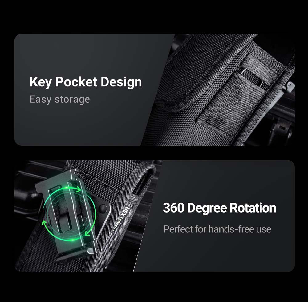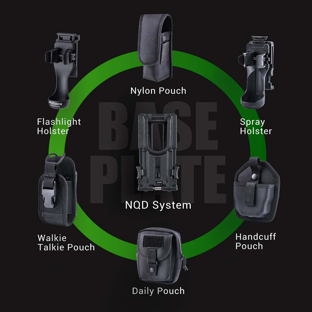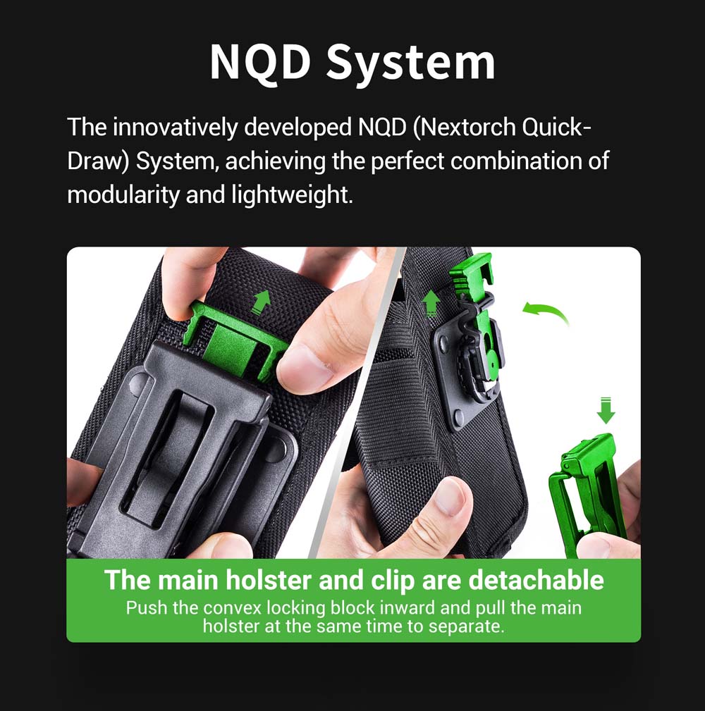 ✅ Adopt Nextorch patented quick draw system;✅ Holster & clip are detachable for convenient carry;✅ Compatible with wide range of duty belts in market;✅ 360 degree rotation for hands-free lighting;✅ Side pocket for storage small tools / gadgets;✅ Hook & loop fastener design cover for quick access to flashlight;✅ Made of durable & waterproof nylon. |