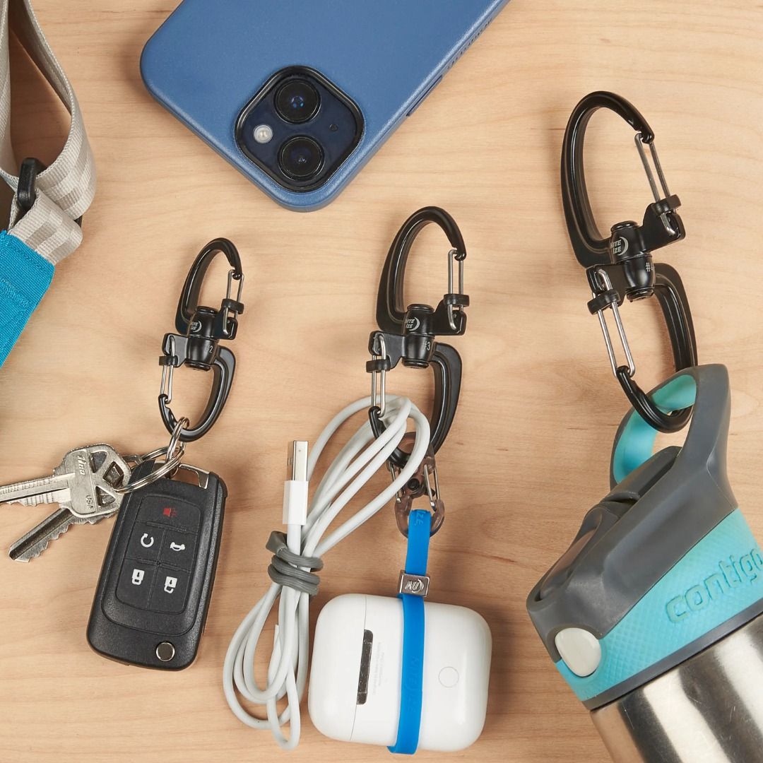 ✅ Integrating a swiveling core that allows you to independently rotate either side for easy access; ✅ Free-spinning center enables you to position the carabiner as you like; ✅ Perfect for clipping keys, water bottles, plants, décor and more; ✅ Durable zinc alloy body built to withstand years of daily use; ✅ Stainless steel slidelock gates that lock independently for ultimate gear security. |