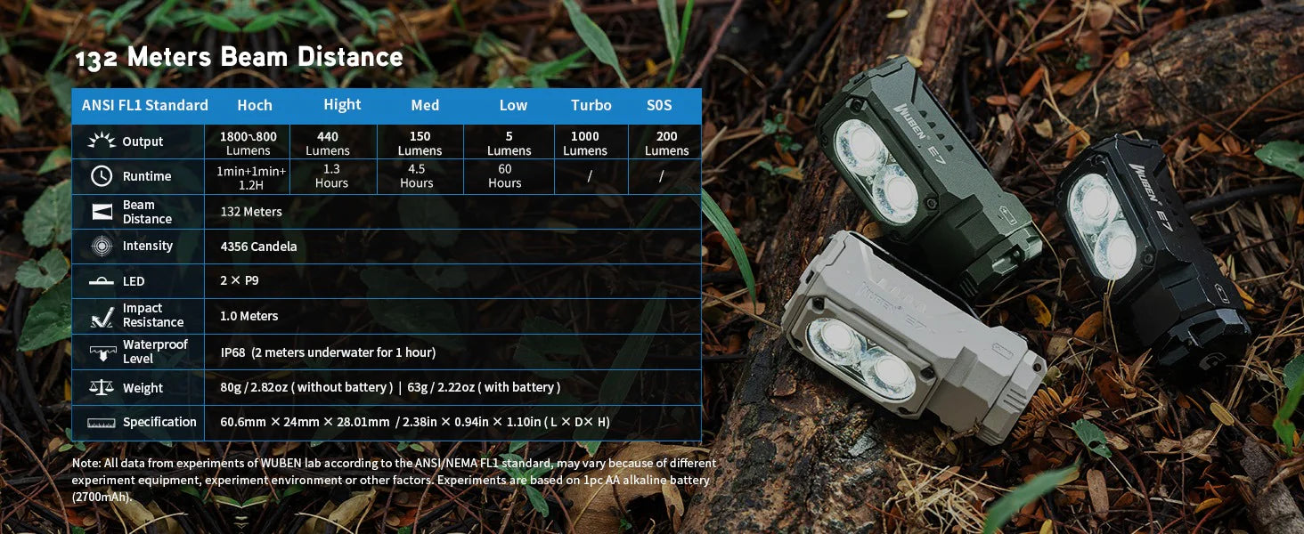 PACKAGE INCLUDE: 1 x Wuben E7 headlamp1 x Wuben 18350 li-ion rechargeable battery_1,100 mAh1 x USB-C coil charging cable1 x Headband1 x User manual |