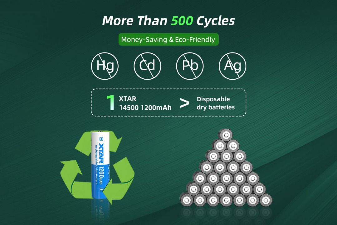 XTAR 14500 [1200 mAh] Li-ion Rechargeable Battery - $9.90 Per Piece